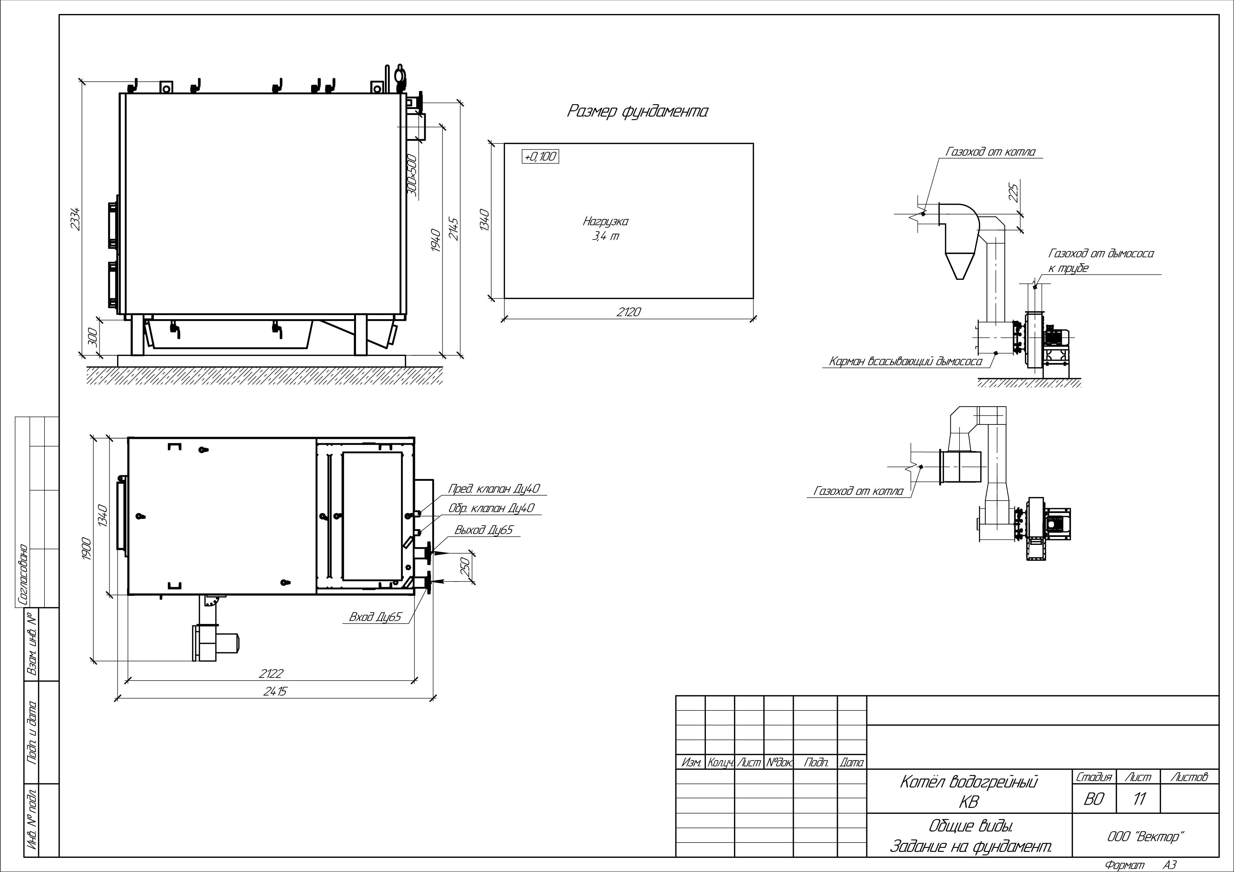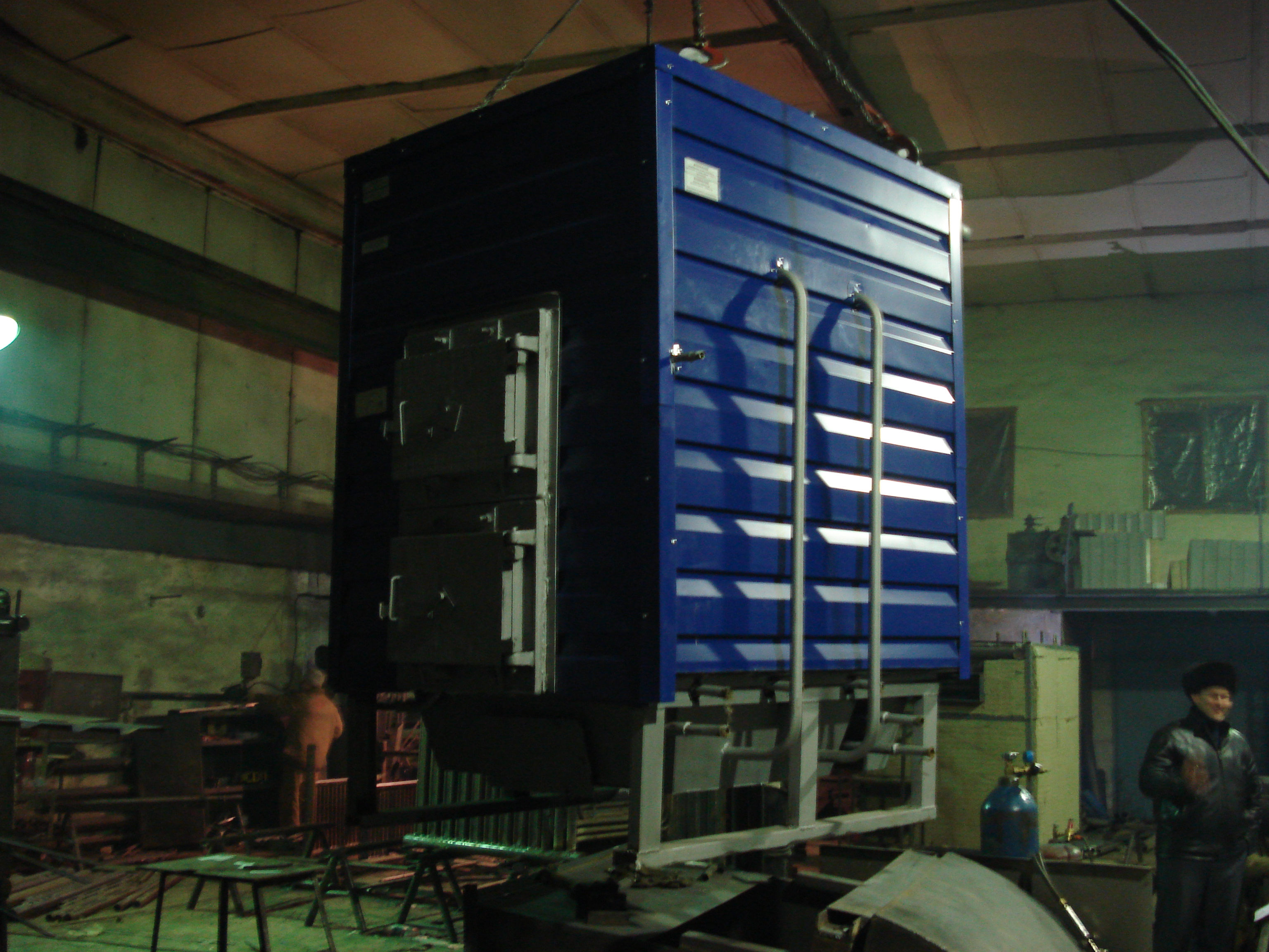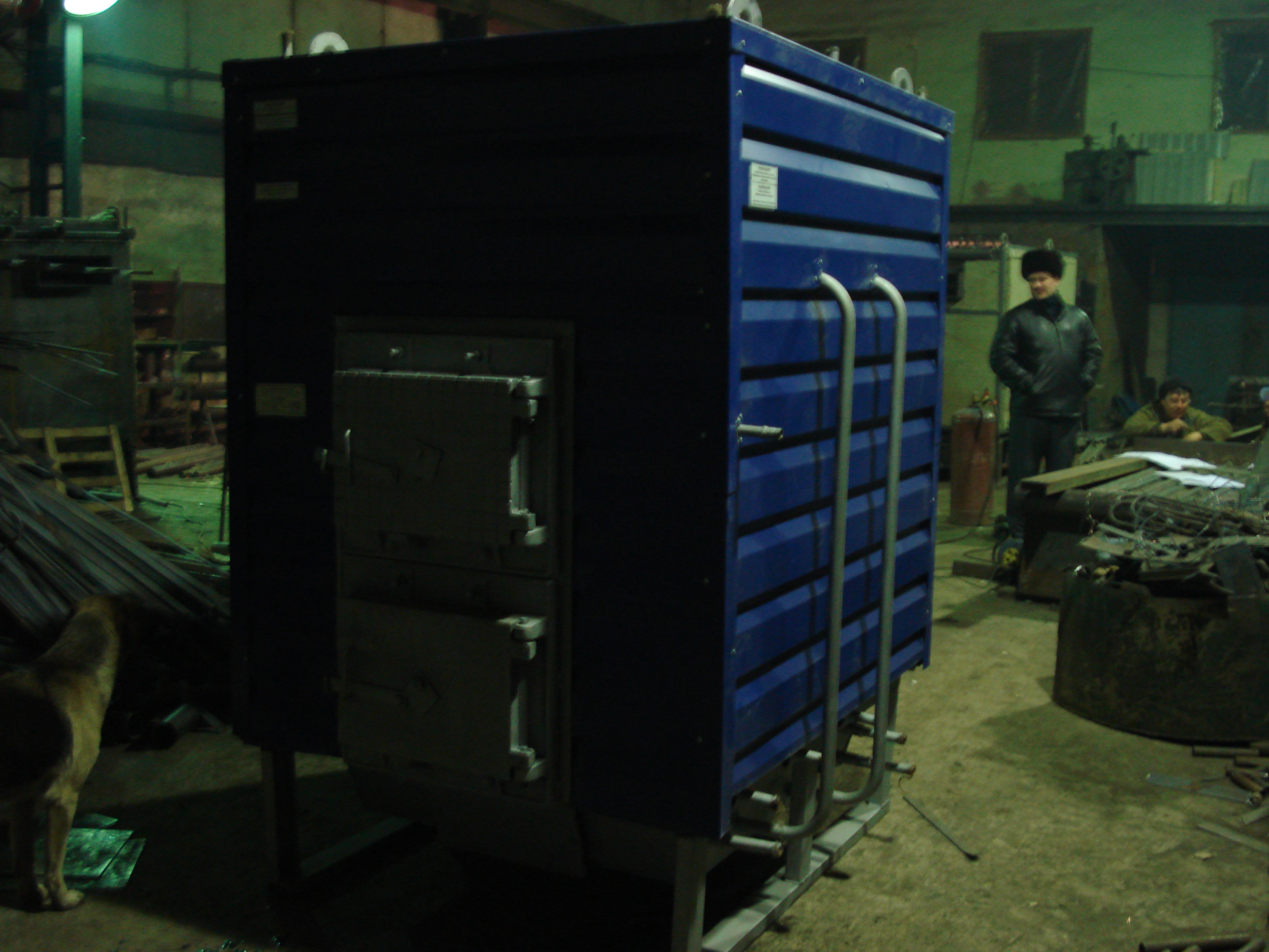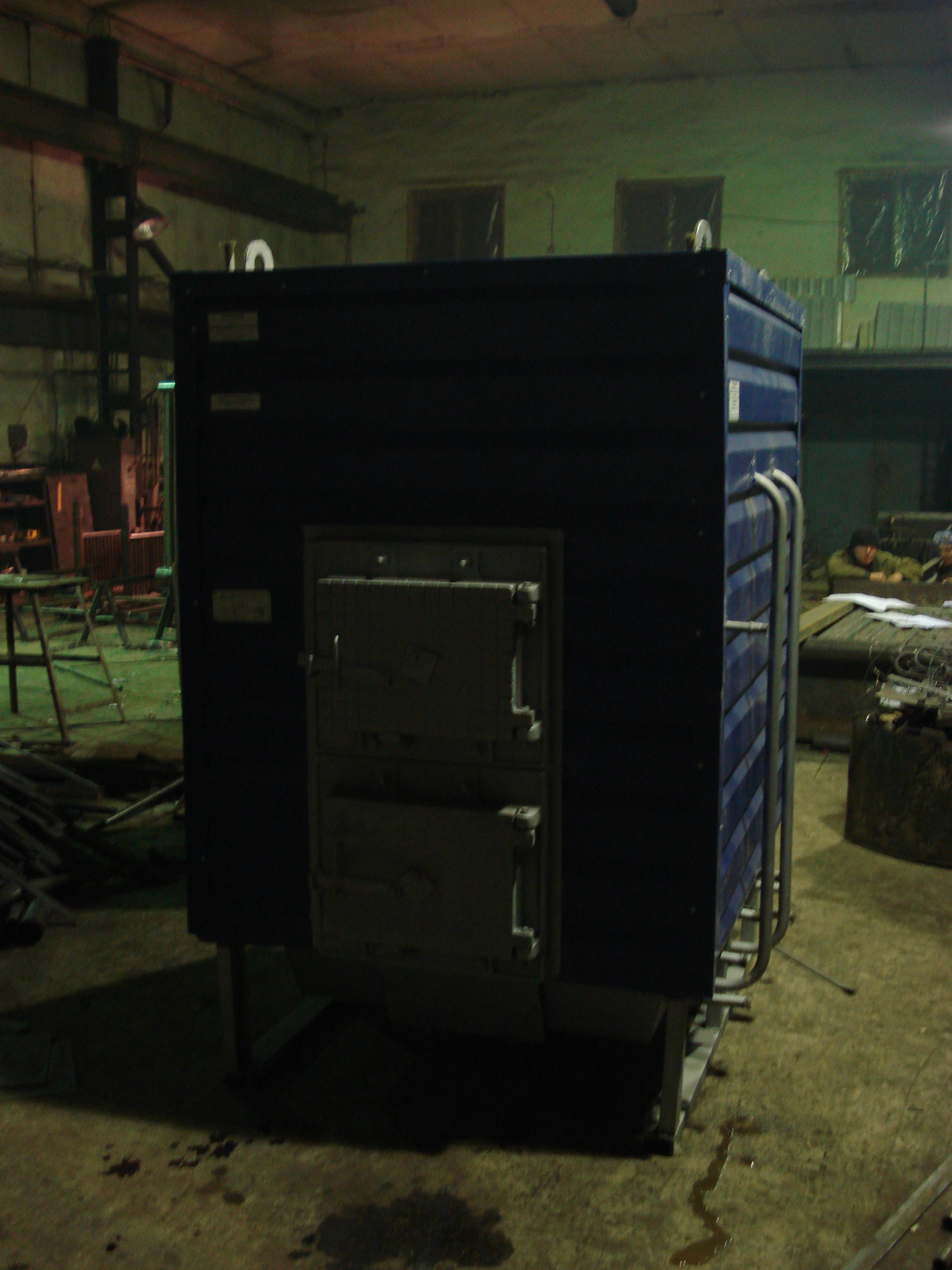 Дровяной котел КВр-0,75 c колосниковой решеткой устанавливается на специально подготовленный фундамент и крепится анкерными болтами. Важно обеспечить ровную установку котла и обеспечить воздухоподачу к топке. Далее котел присоединяется к средствам водоснабжения, устанавливается вся запорная арматура и КИП, устанавливаются система отвода газов и элементы управления.
