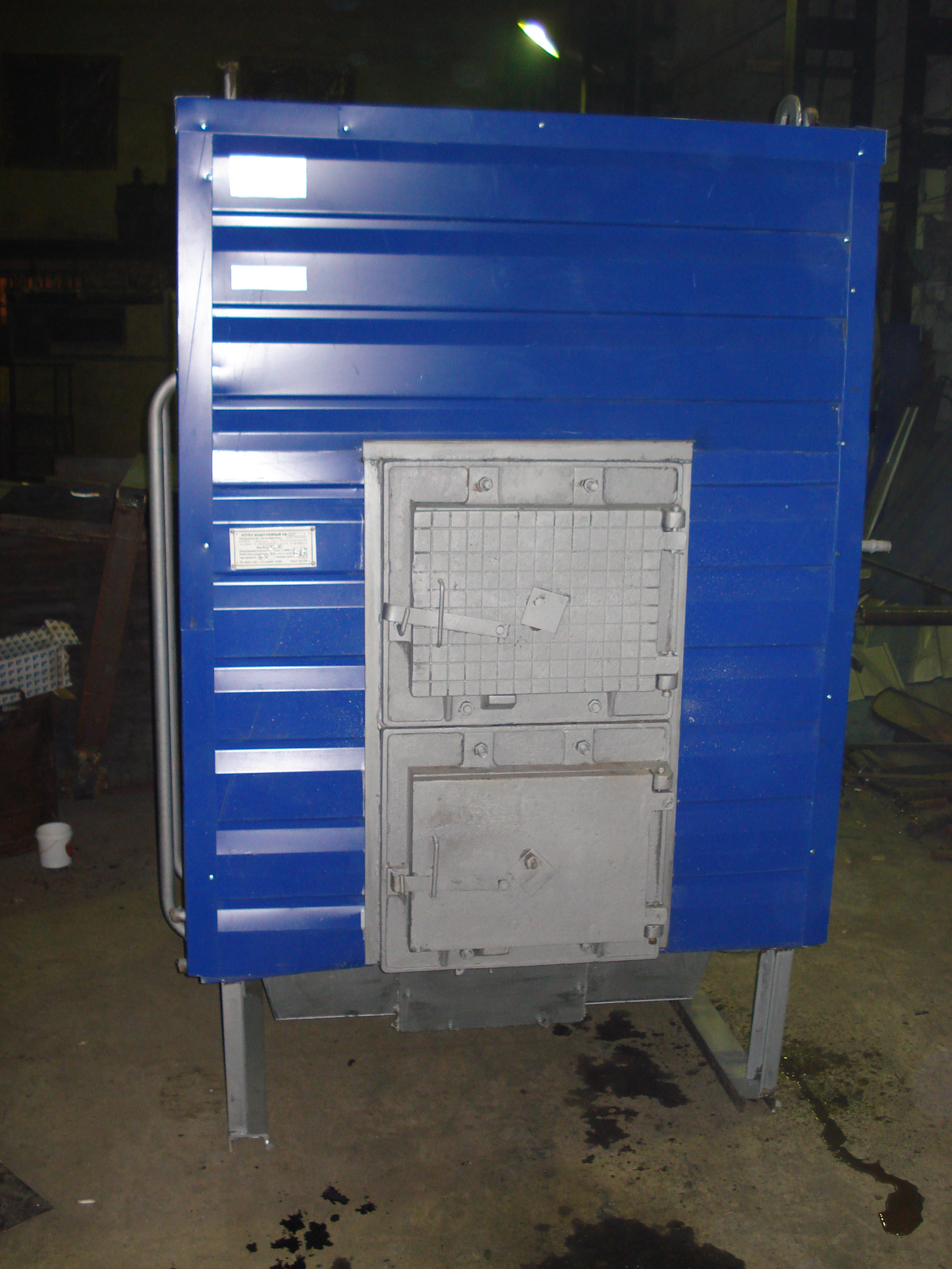Основными частями дровяного котла КВр-0,75 c колосниковой решеткой являются топка, система трубопровода и каркас, обшитый теплоизоляционными материалами. Топливо подается в топку, начинается процесс горения, в результате которого выделяется тепло и нагревается система трубопровода. Полученная горячая вода может использоваться как для отопления помещений, так и для обеспечения нужд горячего водоснабжения.