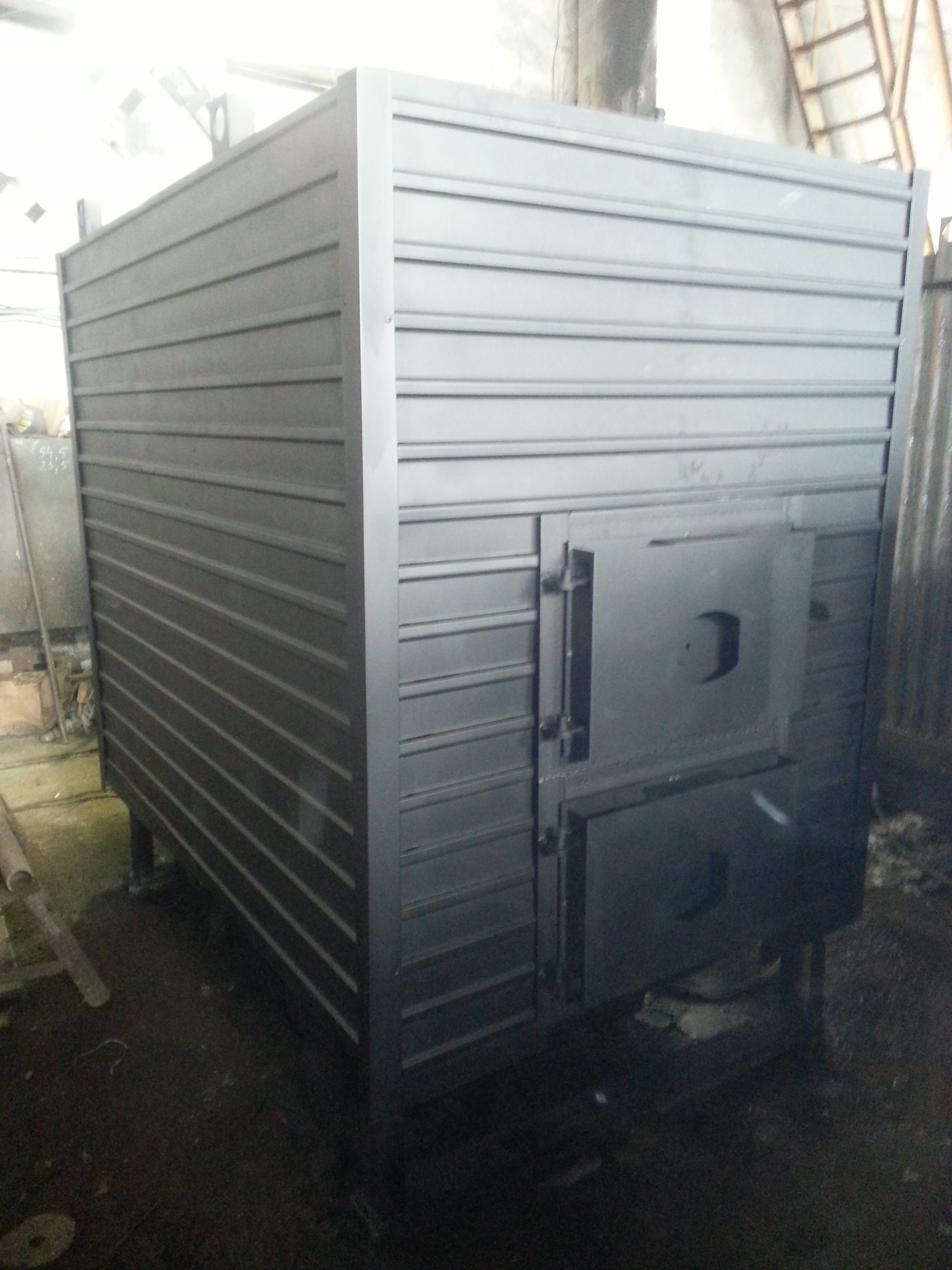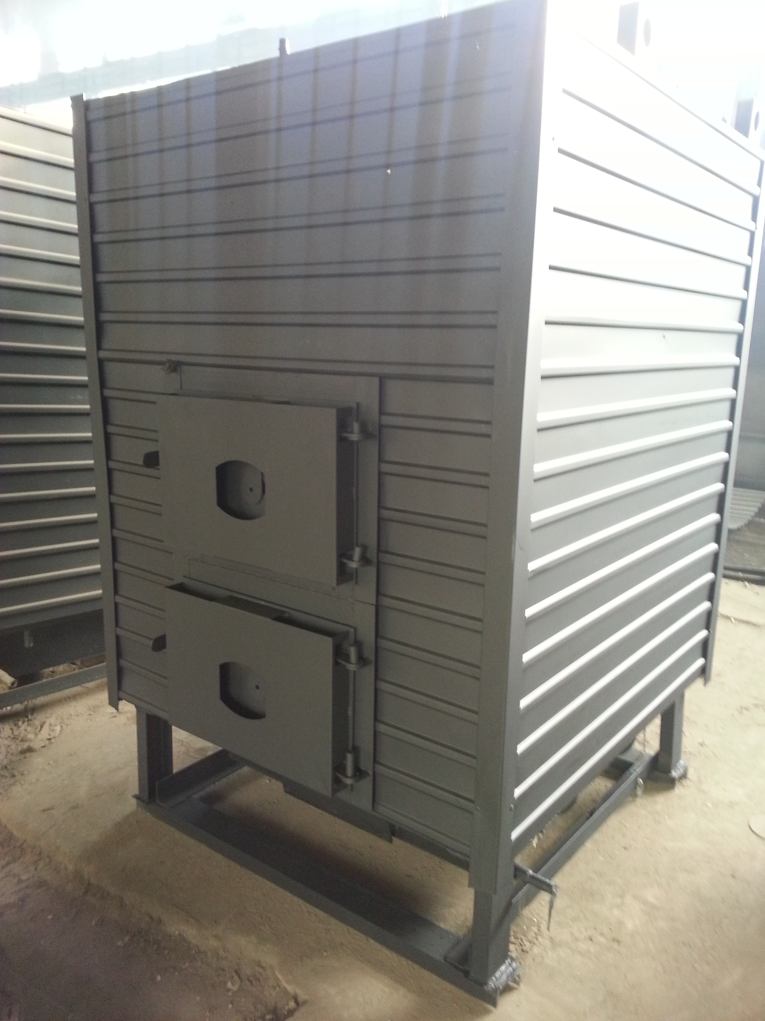 Газы, выделившиеся при горении, проходят дважды по конвективной части, чтобы теплоотдача была максимальной, после чего выводятся. Зола, оставшаяся в результате горения, вычищается вручную или посредством специального оборудования.