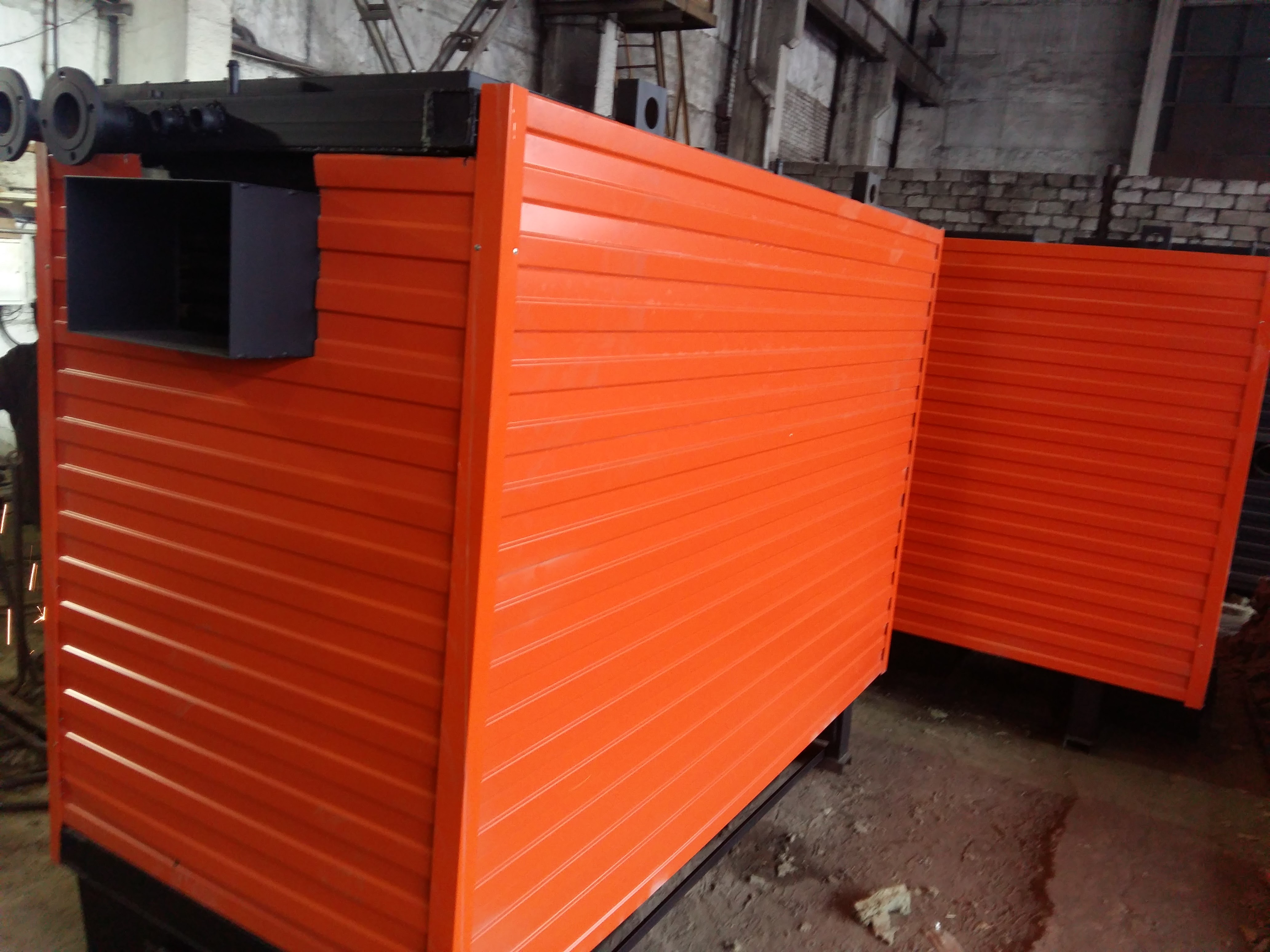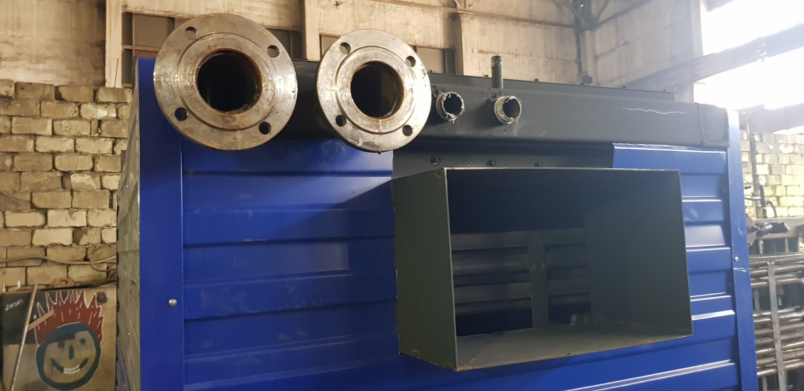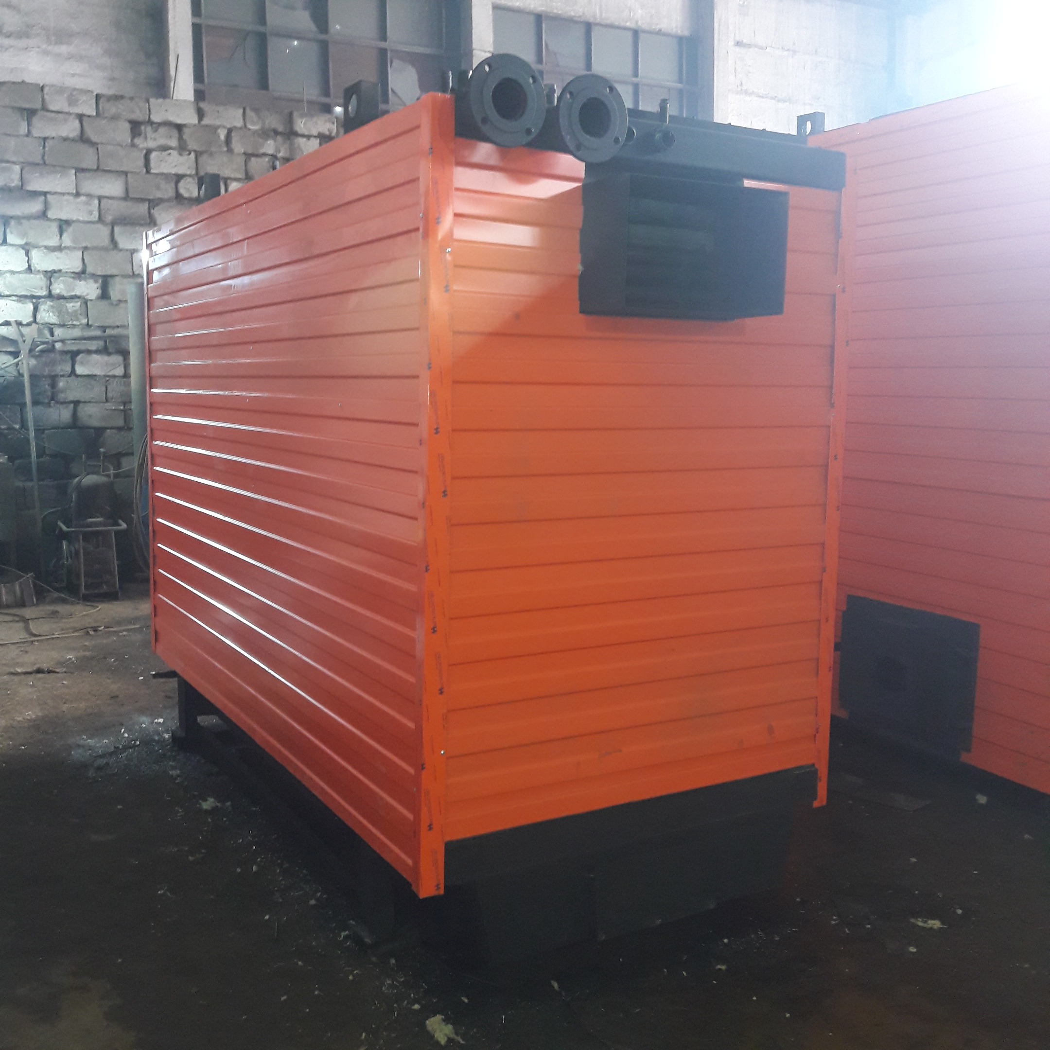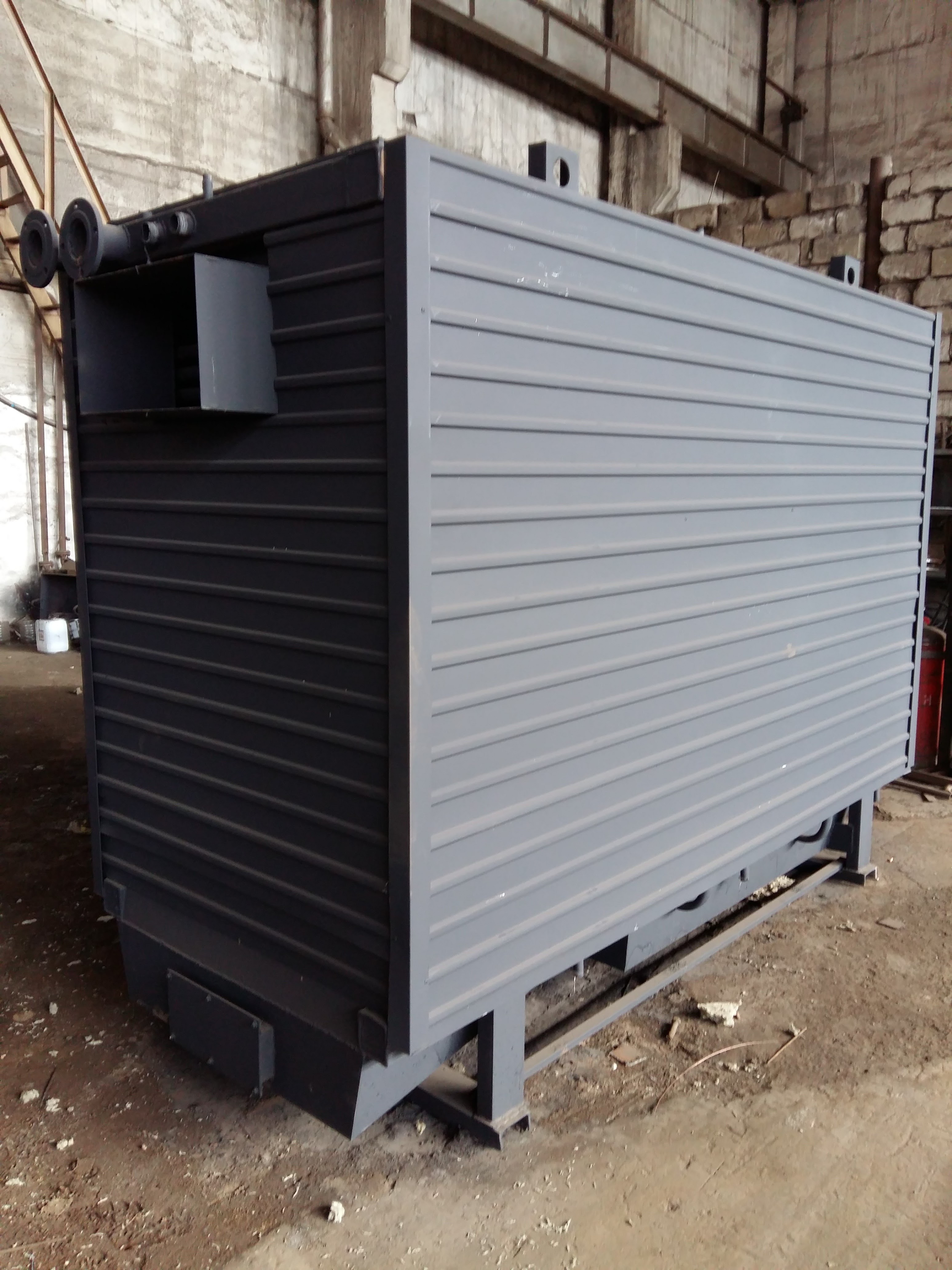 Дровяной котел КВр-1,16 c колосниковой решеткой устанавливается на специально подготовленный фундамент и крепится анкерными болтами. Важно обеспечить ровную установку котла и обеспечить воздухоподачу к топке. Далее котел присоединяется к средствам водоснабжения, устанавливается вся запорная арматура и КИП, устанавливаются система отвода газов и элементы управления.