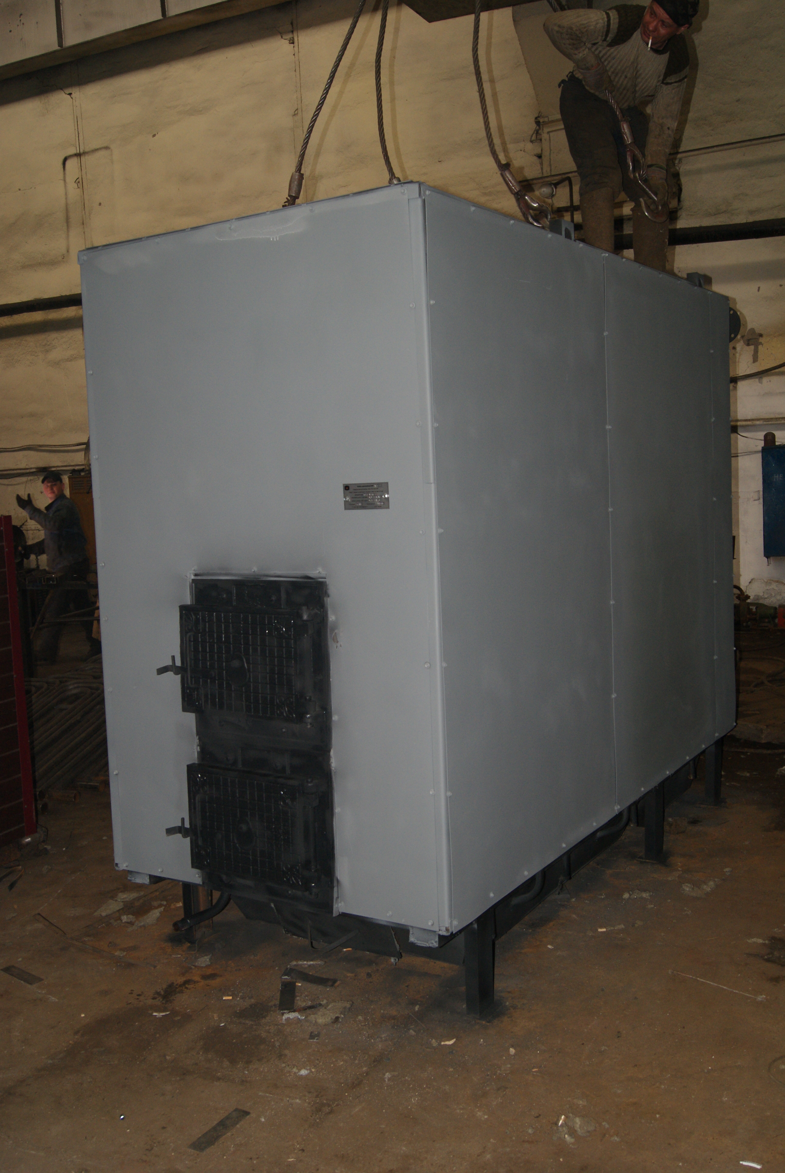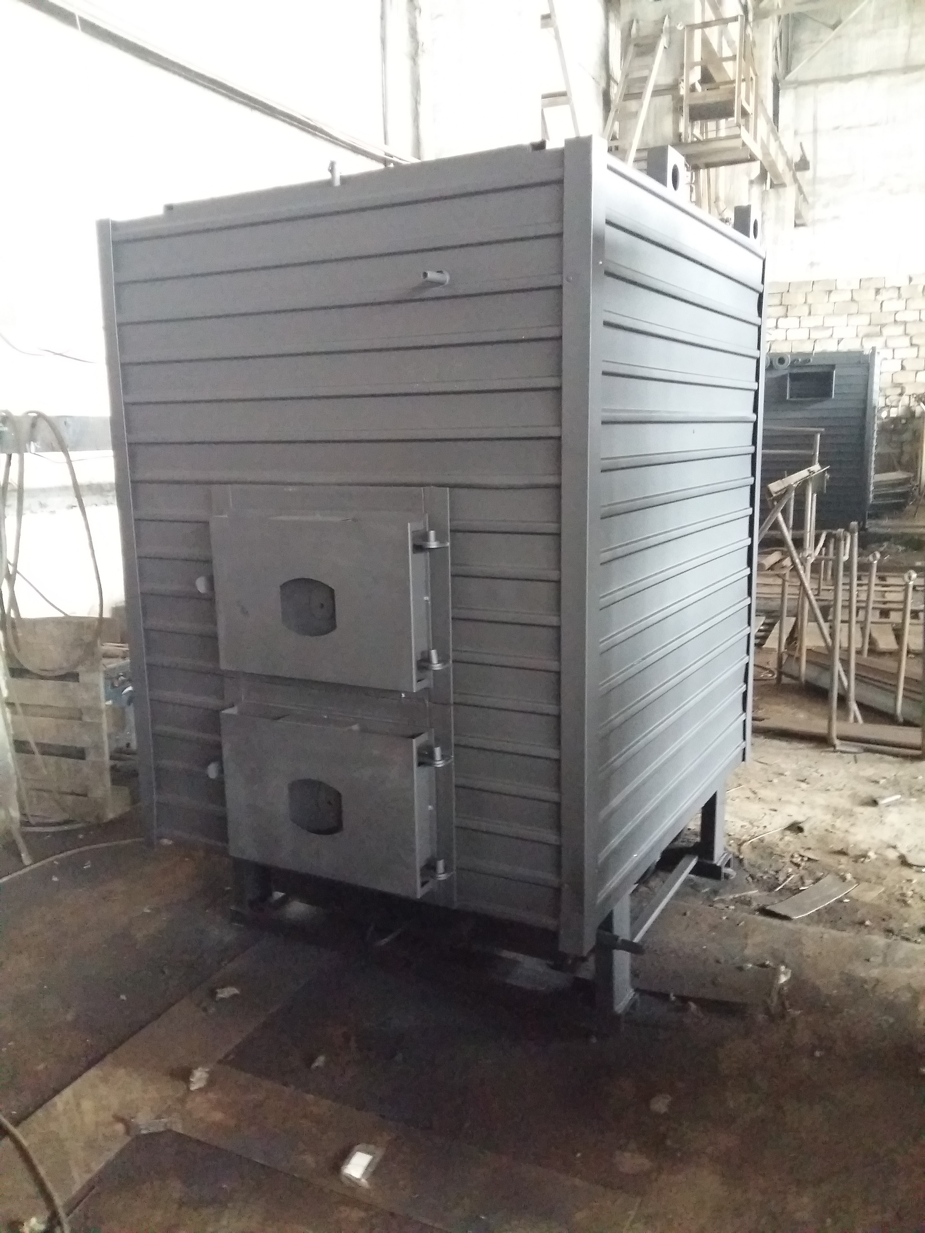Дровяной котел КВр-1,3 c колосниковой решеткой устанавливается на специально подготовленный фундамент и крепится анкерными болтами. Важно обеспечить ровную установку котла и обеспечить воздухоподачу к топке. Далее котел присоединяется к средствам водоснабжения, устанавливается вся запорная арматура и КИП, устанавливаются система отвода газов и элементы управления.