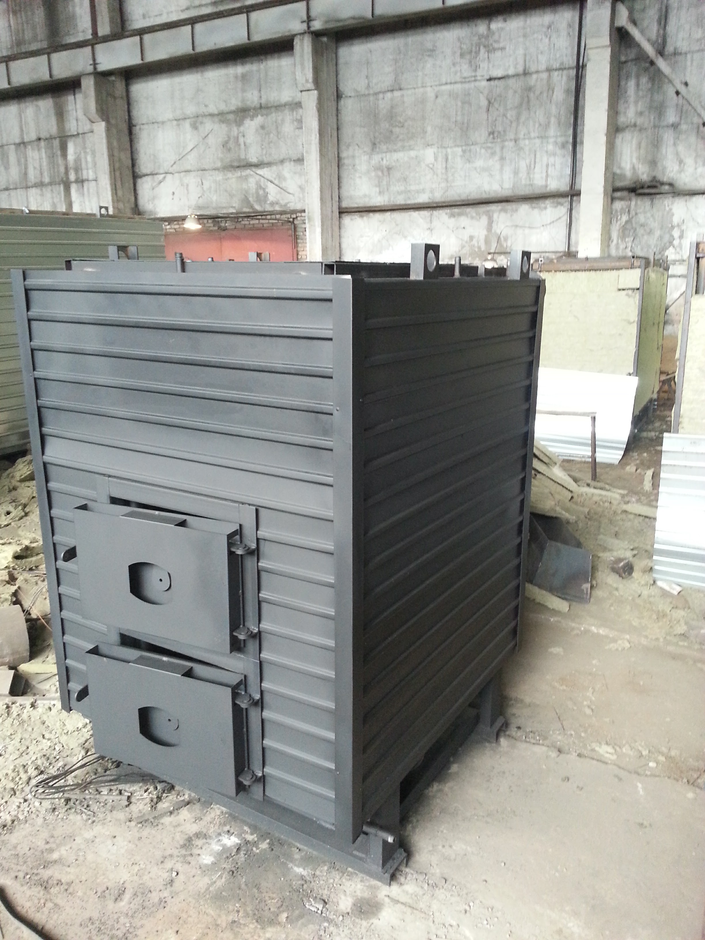 Газы, выделившиеся при горении, проходят дважды по конвективной части, чтобы теплоотдача была максимальной, после чего выводятся. Зола, оставшаяся в результате горения, вычищается вручную или посредством специального оборудования.